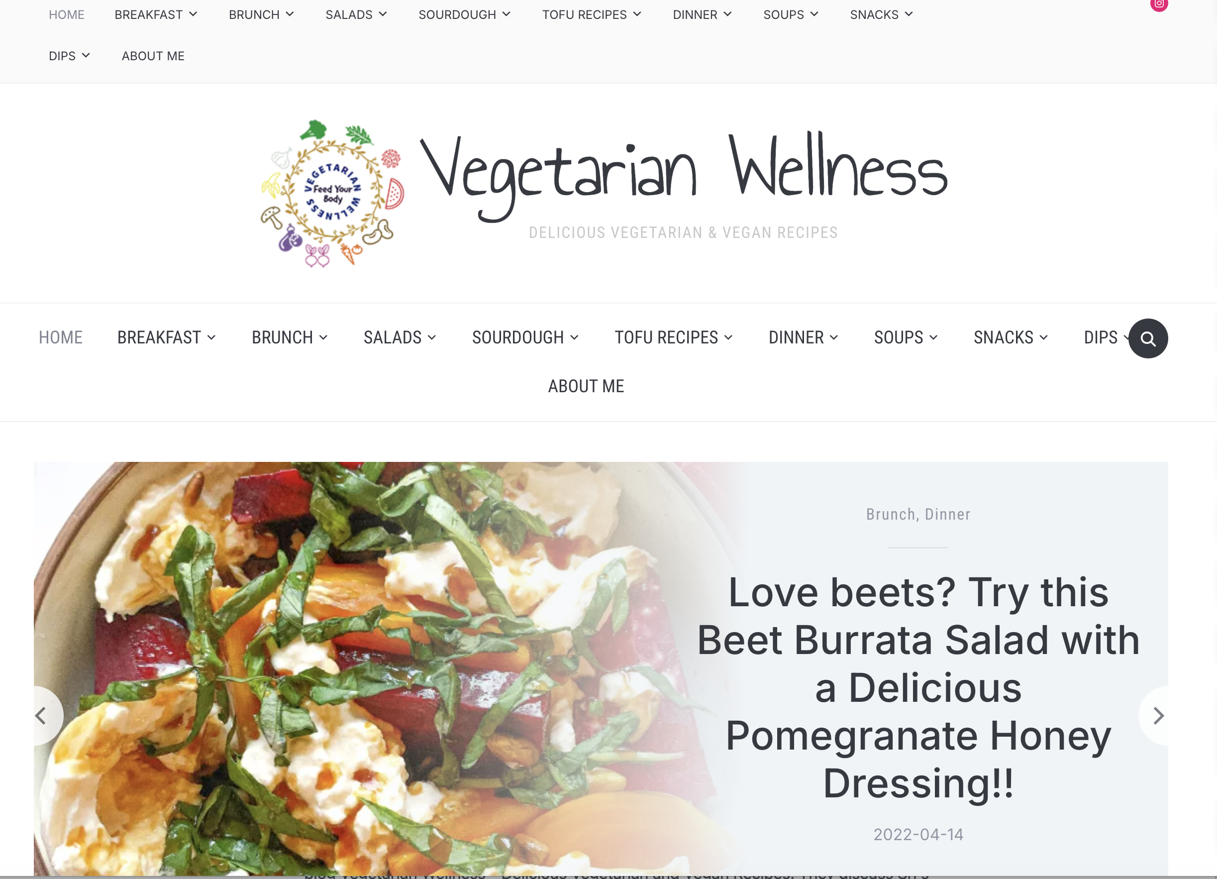 My blog is vegetarianwellness.com (without the “e” after the “g”), and I’m also very active on Instagram @vegetarian.wellness. I share vegetarian recipes, simple cooking ideas, and everyday tips to make vegetarian eating approachable and enjoyable.
